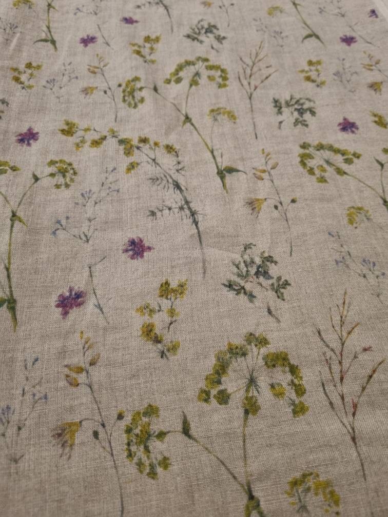 Experience the beauty of nature with our natural pure linen fabric featuring a digital print of summer meadow plants. We use eco-friendly inks that allow for machine washing, ironing or dry cleaning.